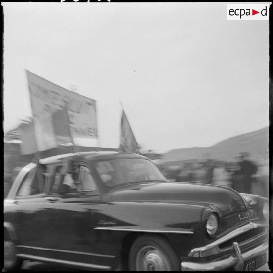Défilé en voiture Simca Aronde du comité de salut public à Tizi-Ouzou.
