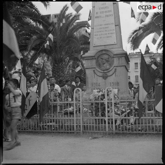 La foule autour du monument aux morts de 1914-1918 lors de la cérémonie du comité de salut public, à Tizi-Ouzou.