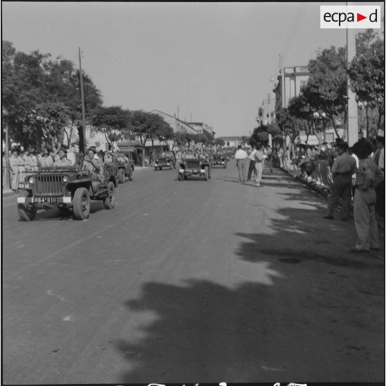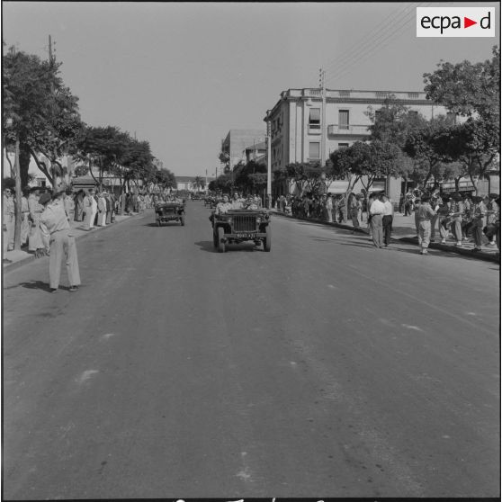 Différents véhicules militaires participent au défilé comme des jeeps Delahaye (R13, R25 à R28, R32), des Dodges 4x4 (R6 à R8), des half-tracks (R29) et des camions White 666 servant probablement le Génie (R30, R31). Troupes défilant devant les officiels (R14 à R17, R22). Une musique militaire est active pendant le défilé militaire (R21, R23, R24).