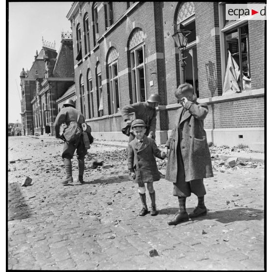 Dégâts et destructions dans la ville de Flessingue bombardée.