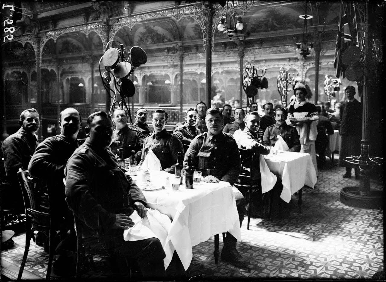 Déjeuner des musiciens anglais au Restaurant Duval, rue Montesquieu, Paris.