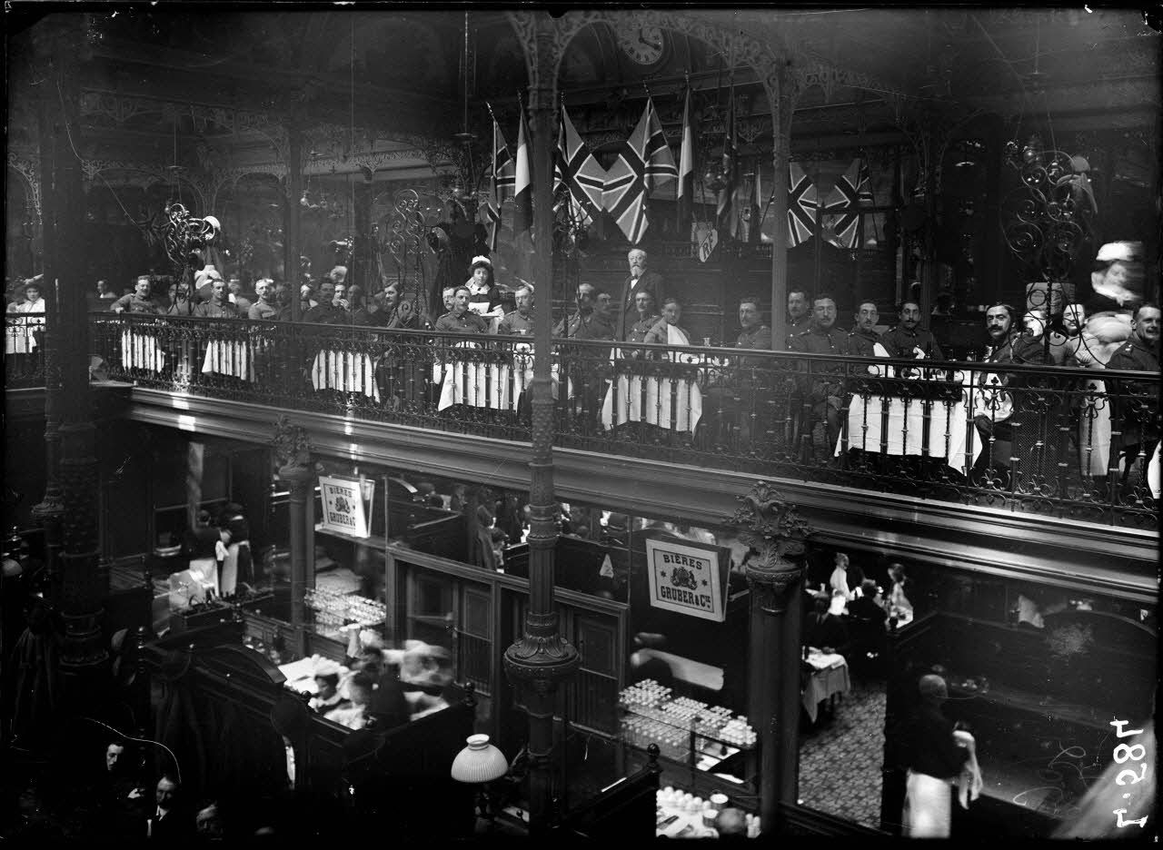 Déjeuner des musiciens anglais au Restaurant Duval, rue Montesquieu, Paris. [légende d'origine]