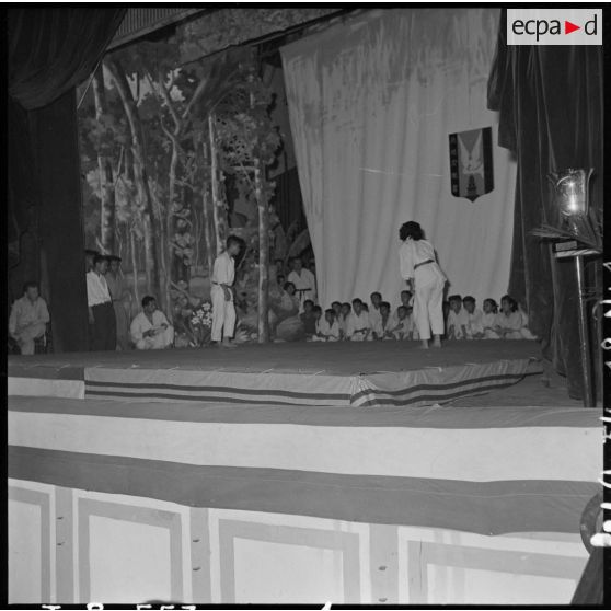 Démonstration de judo au cours d'une soirée de gala organisée par les judokas des commandos au théâtre municipal d'Hanoï.