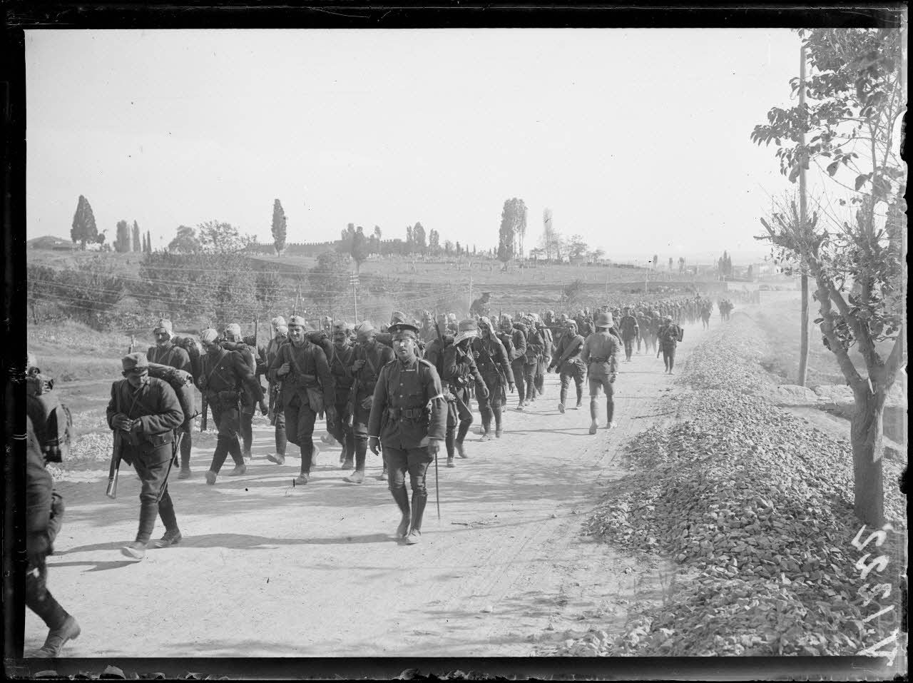 Revue et départ pour le front du premier régiment grec, septembre 1916.
