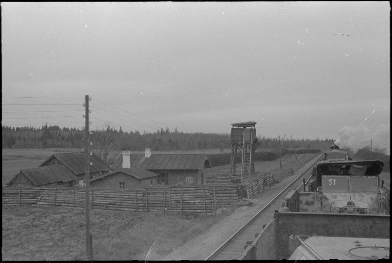 Déplacement d'un train à bord duquel ont été placés des véhicules de la Propaganda Kompanie 697 (Pk.697).