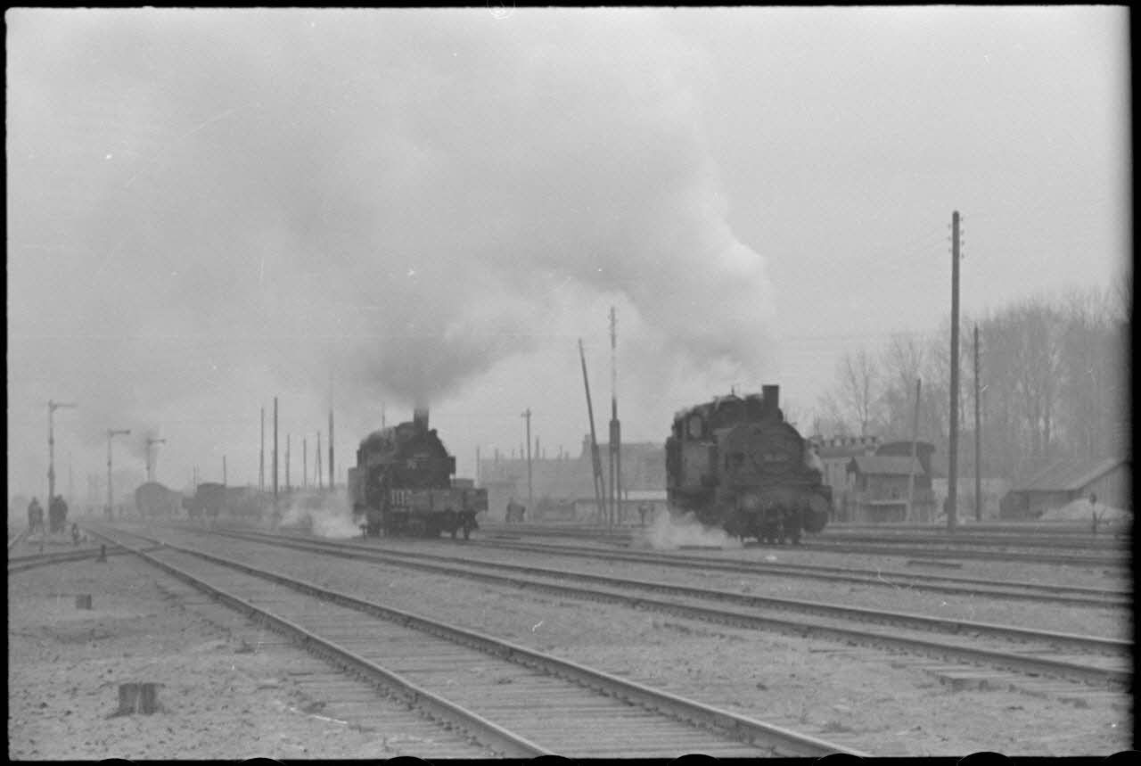 La locomotive numérotée 553052 tracte un train transportant des unités mixtes de la Wehrmacht (Luftwaffe et Pk.697).