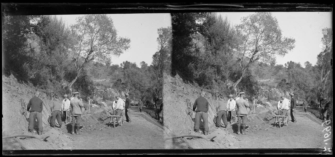 Dépôt de Castelluccio. Prisonniers travaillant à la route.