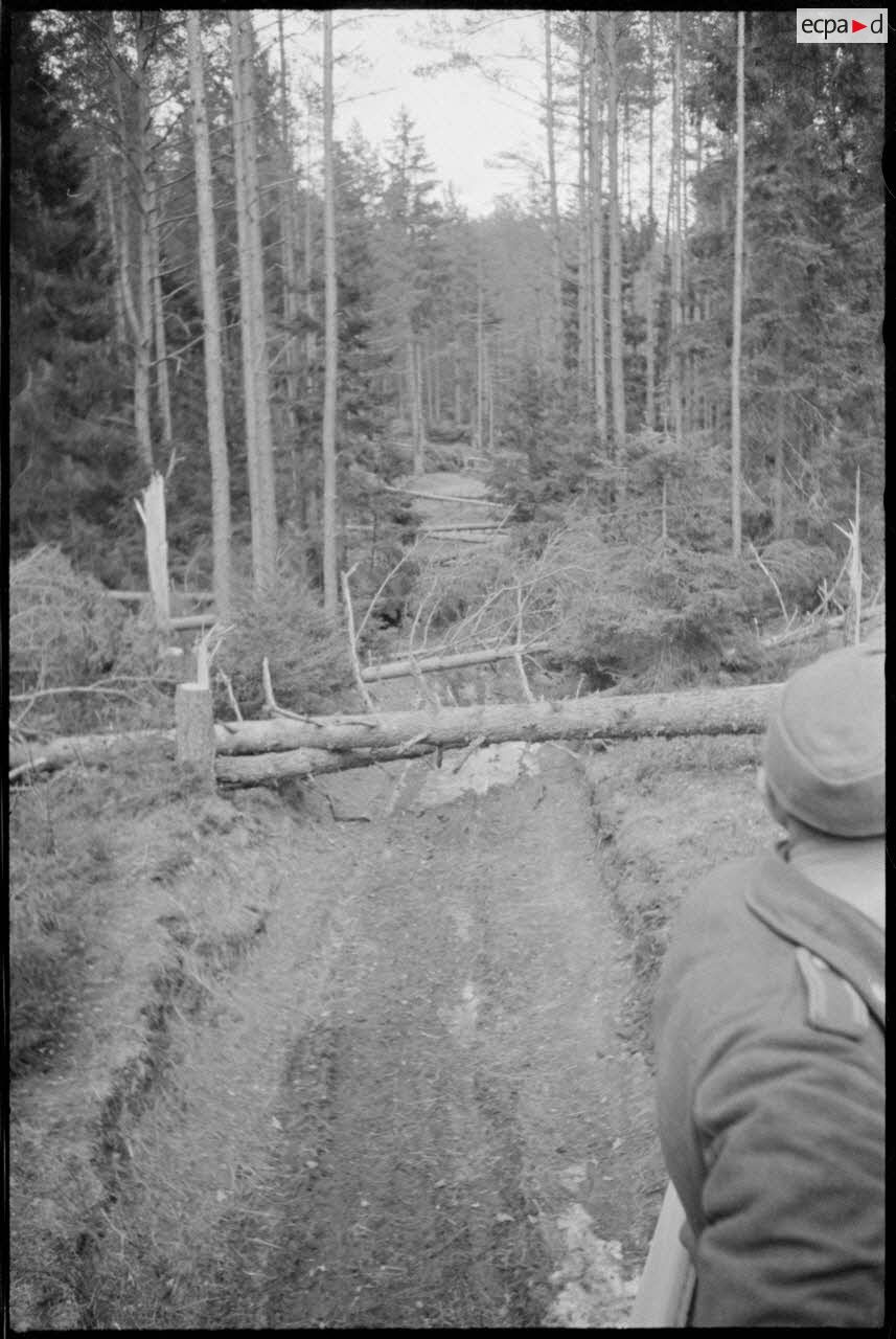 Des arbres ont été volontairement coupés par la résistance pour interdire la progression des véhicules allemandes, ici des Nashorn du Schwere Panzer Abteilung 519.