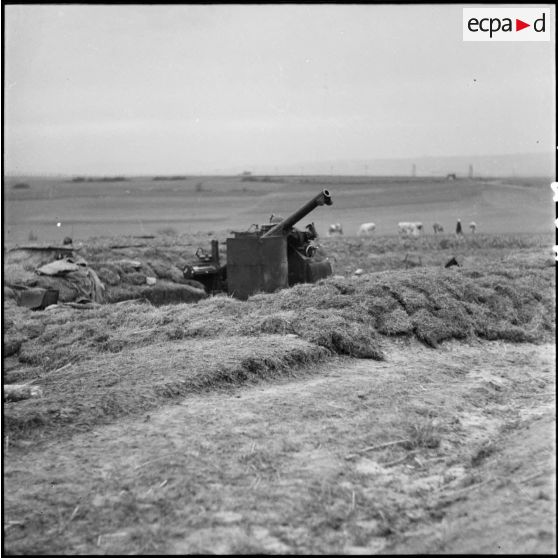 Plan général d'un 75 mm CA autocanon M1913/1934 en batterie du 404e RAAA dans le secteur de la 3e armée.