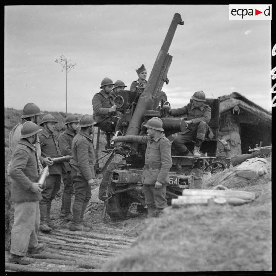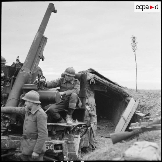 Les artilleurs du 404e RAAA entourent l'autocanon de 75 mm M1913/1934.