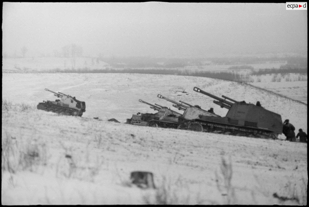 Tirs d'une batterie de Wespe sur le front de Vitebsk (Witebsk) de la 3e armée blindée allemande (3.Panzerarmee) et spécifiquement de la 60.Panzer-Grenadier-Division "Feldherrnhalle".