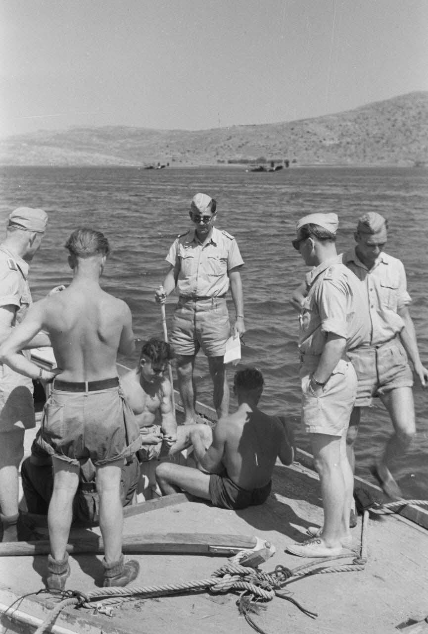Des aviateurs allemands sur un bateau de pêche crétois.