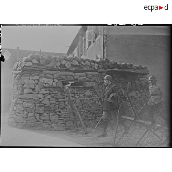 Plan général d'un avant-poste constitué de pierres et de sacs de sable.
