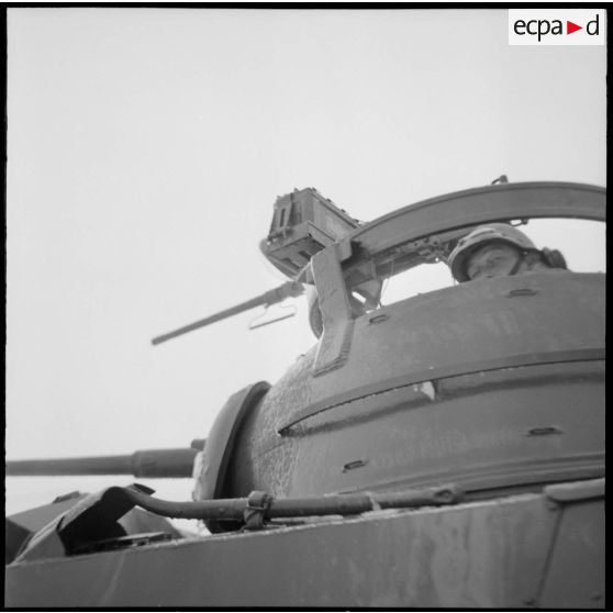 Un soldat du 146e régiment d'infanterie (RI) au poste de tireur sur un véhicule dans la région de Tablat.