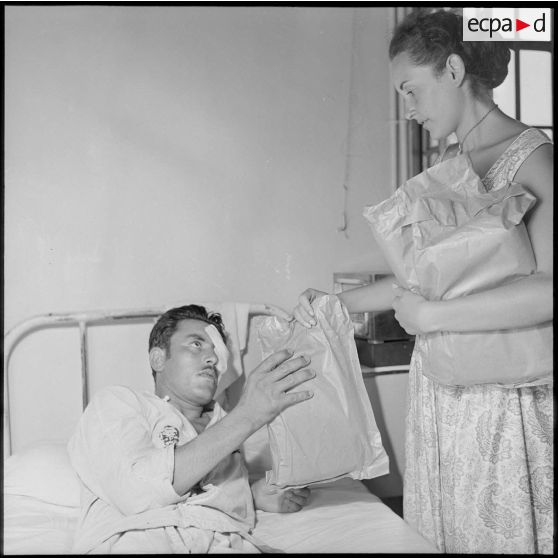 Remises de colis aux blessés de l'hôpital Maillot d'Alger.