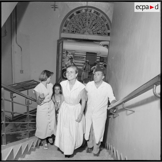 Des étudiantes dans les escaliers de l'hôpital Maillot.