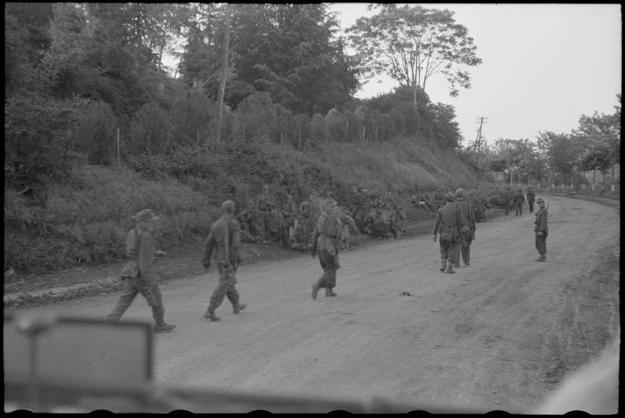 Des fantassins et des parachutistes allemands marquent une pause le long d’une route (FALLAOK F2089 L15 à L21). Des officiers de la Wehrmacht autour d’une carte (FALLAOK F2089 L22 à L24). Les fantassins dépendent de la 65e division d'infanterie. Des troupes aéroportées allemandes sur une route (FALLAOK F2089 L25 à L27). Un Panzer VI "Tigre" du Schwere Panzer Abteilung 508 est recouvert de branches d'arbres (FALLAOK F2089 L28 à L30).