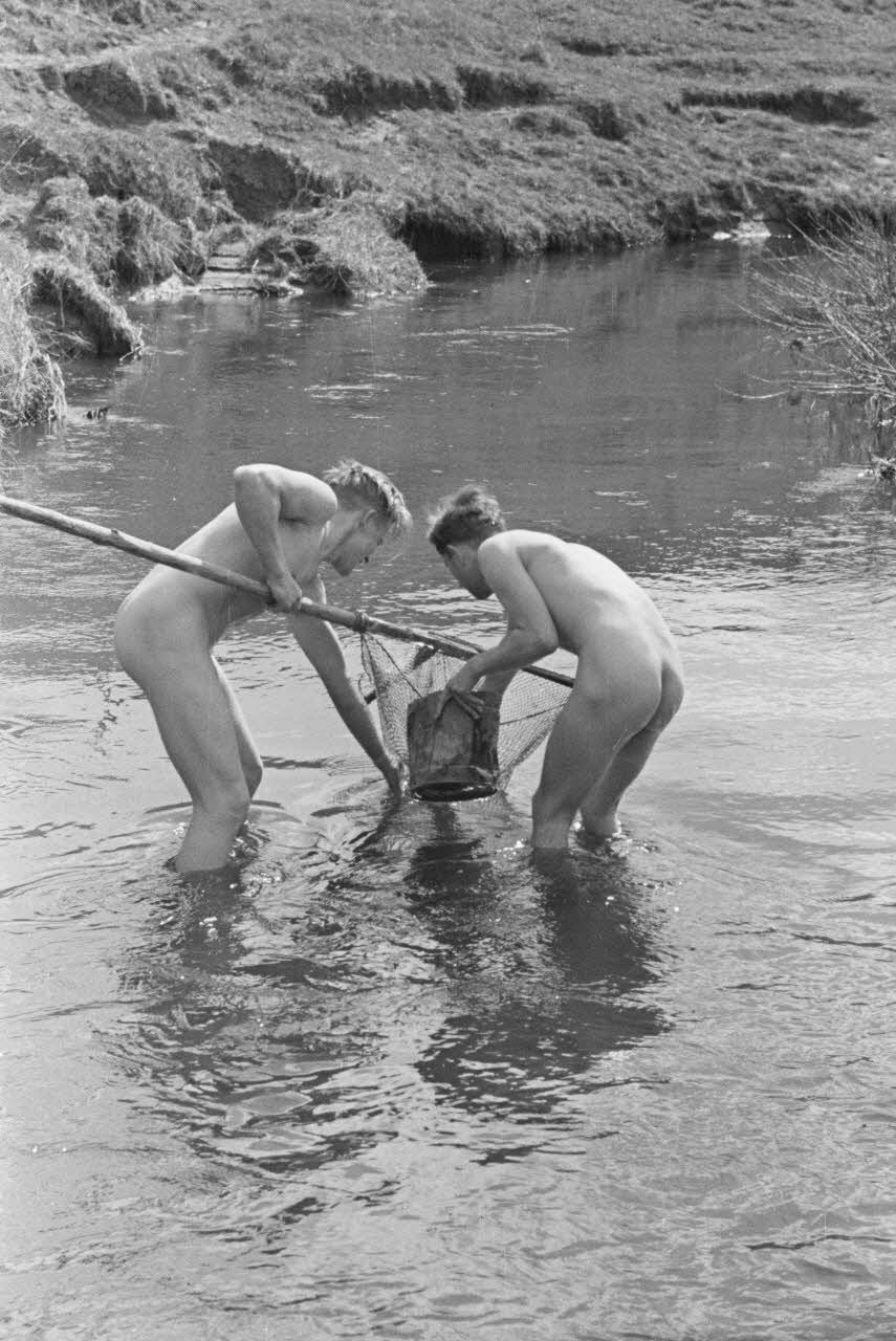 Des fantassins allemands pêchent à proximité de leurs positions défensives.