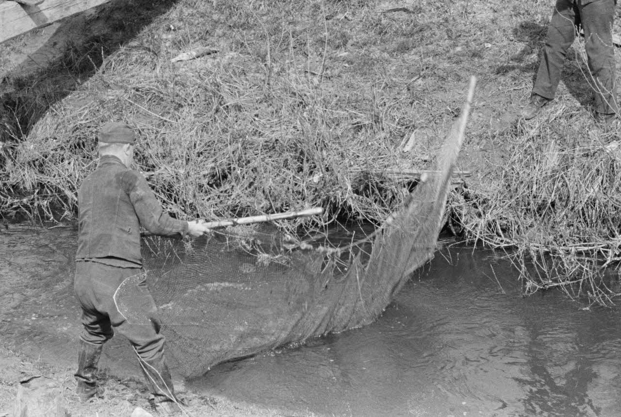 Des fantassins allemands pêchent à proximité de leurs positions défensives.