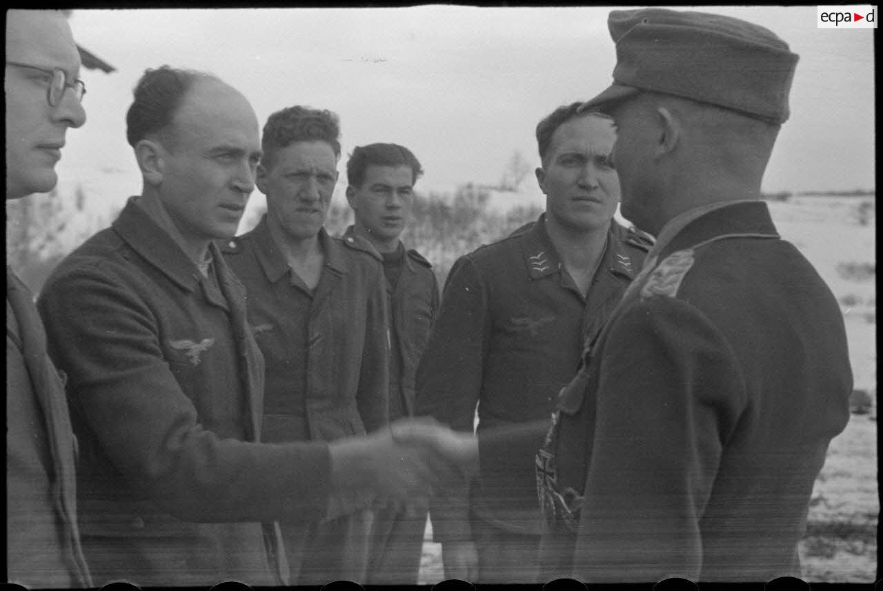 Dans le secteur de Vitebsk (Witebsk), le général (Generalleutnant) Robert Pistorius rend visite aux fantassins de la 4e division d'infanterie de l'armée de l'Air allemande (4. Luftwaffe Feld Division).
