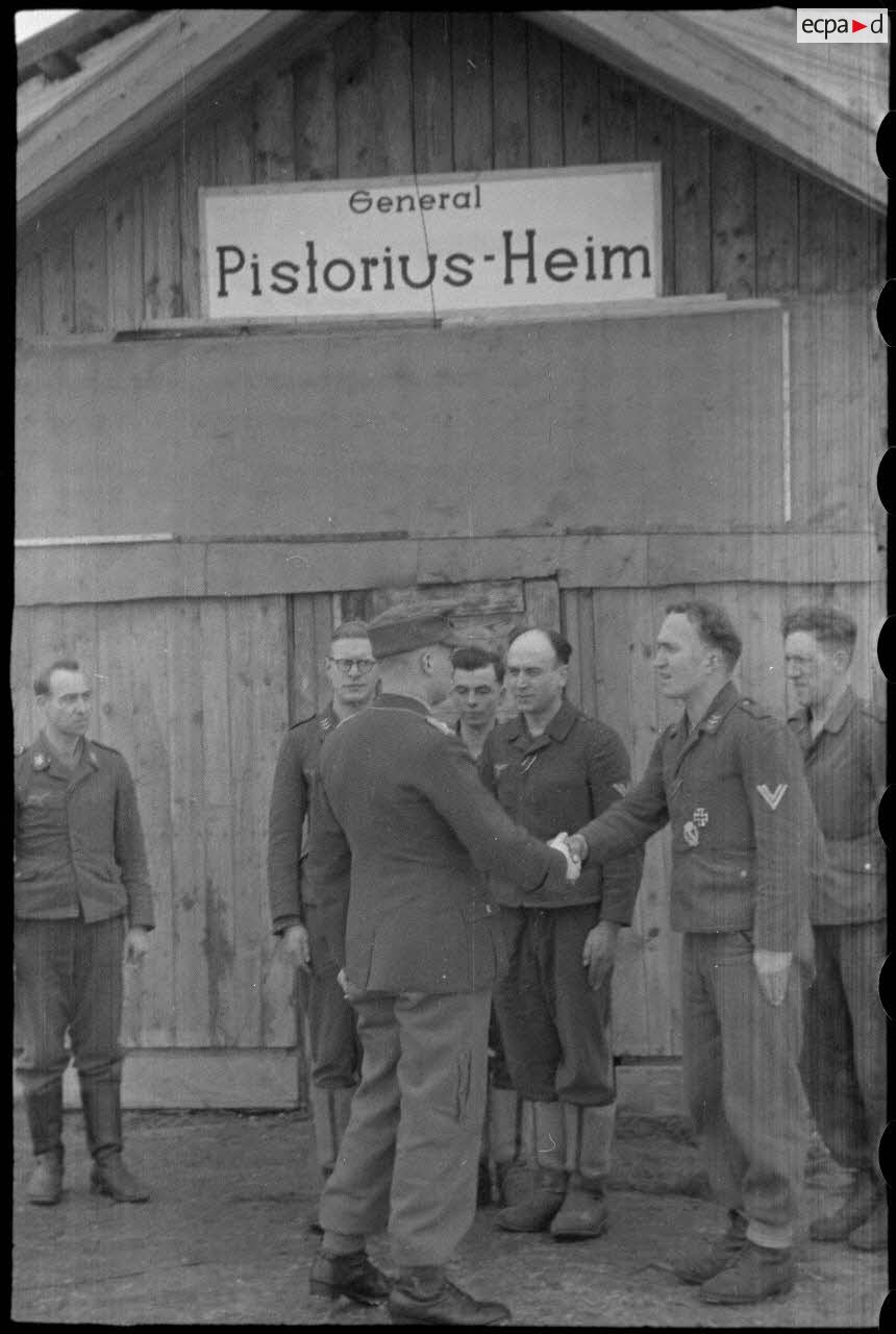 Dans le secteur de Vitebsk (Witebsk), le général (Generalleutnant) Robert Pistorius rend visite aux fantassins de la 4e division d'infanterie de l'armée de l'Air allemande (4. Luftwaffe Feld Division).