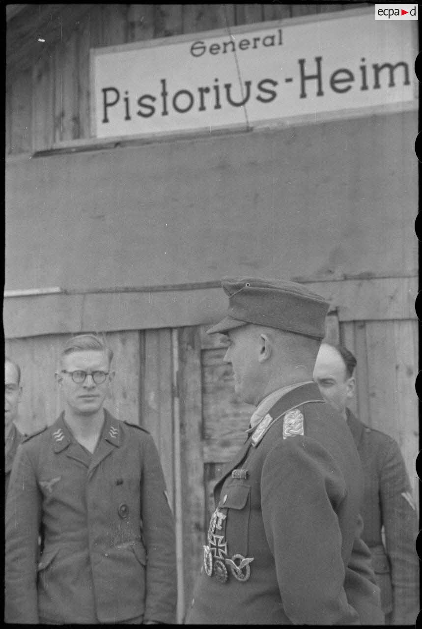 Dans le secteur de Vitebsk (Witebsk), le général (Generalleutnant) Robert Pistorius rend visite aux fantassins de la 4e division d'infanterie de l'armée de l'Air allemande (4. Luftwaffe Feld Division).