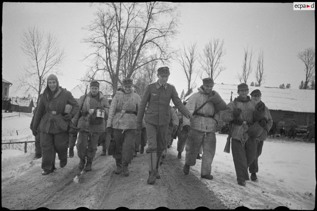 Note : Consulter le reportage PK697 F966 dans lequel on aperçoit un colonel. Il pourrrait s'agir de l'Oberst Hans-Georg Schreder, ancien commandant de la 4e division d'infanterie de la Luftwaffe.