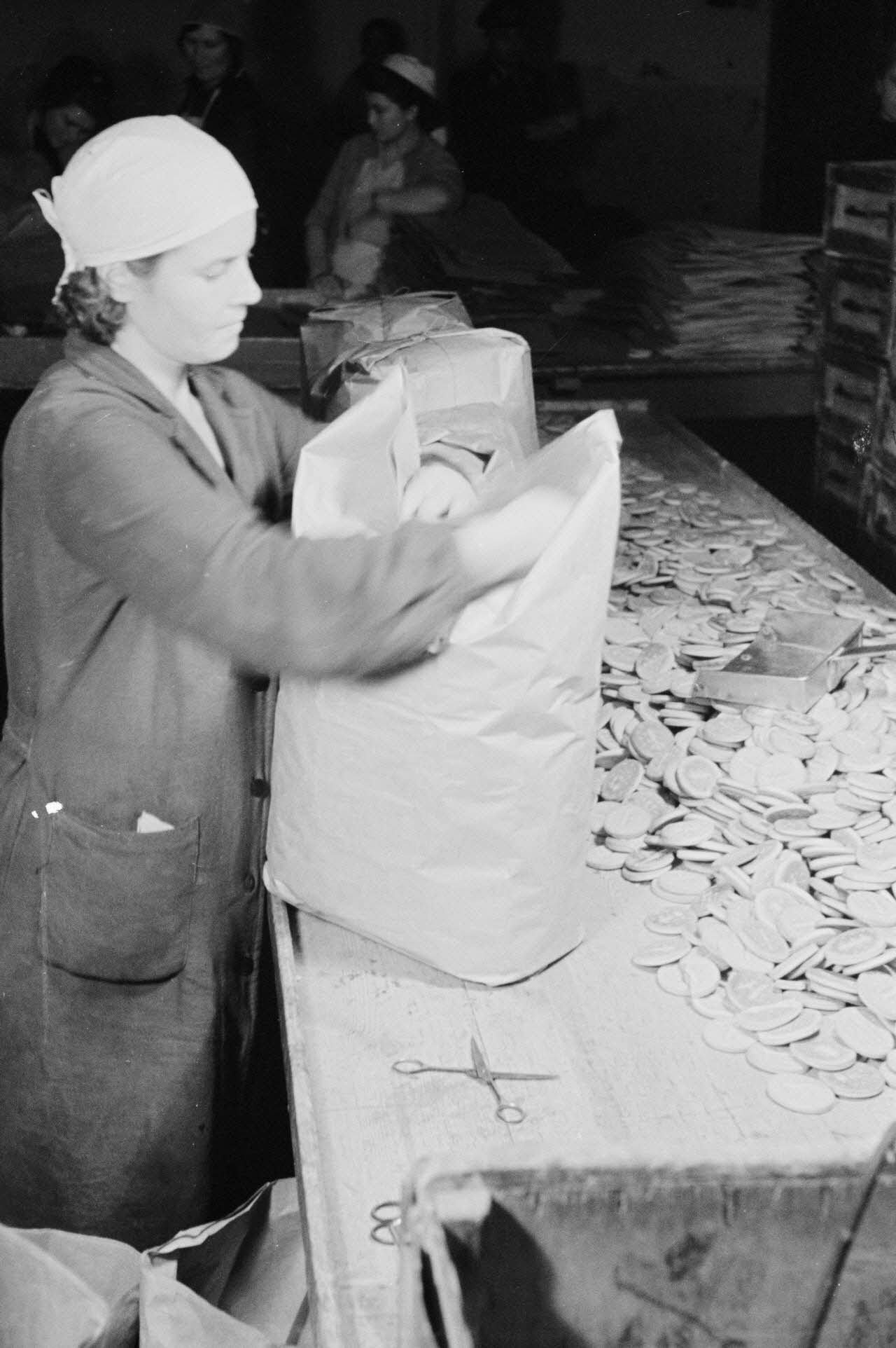 Des femmes russes travaillent dans une buiscuiterie sous le contrôle des contre-maitres allemands.