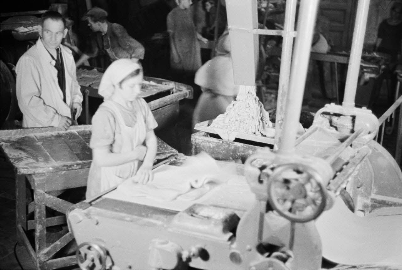 Des femmes russes travaillent dans une buiscuiterie sous le contrôle des contre-maitres allemands.