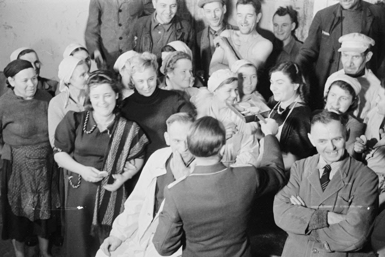 Des femmes russes travaillent dans une usine réquisitionnée par l'armée allemande.