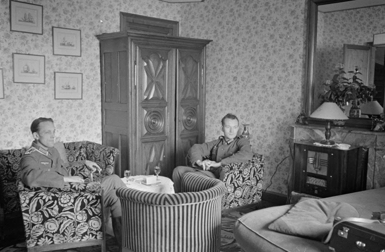 Des marins allemands dans une chambre réquisitionnée pour leur usage sur un site de Loire-Atlantique.
