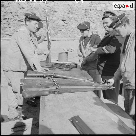 Des marins nettoyant des fusils Mauser.