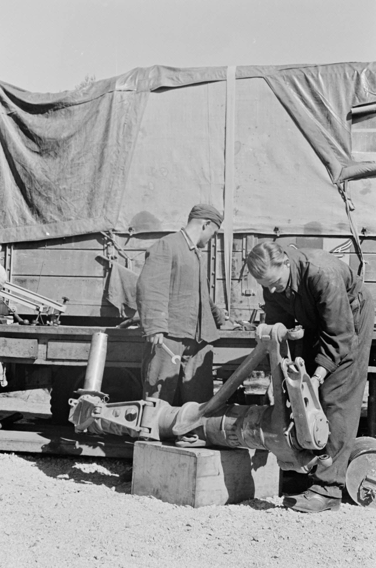 Des mécaniciens de piste du Aufklärungsgruppe 123, certainement le 2.(F)/123 et sa compagnie de réparation (Werkstatt Kompanie).