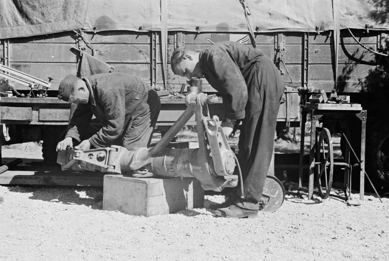 Des mécaniciens de piste du Aufklärungsgruppe 123, certainement le 2.(F)/123 et sa compagnie de réparation (Werkstatt Kompanie).