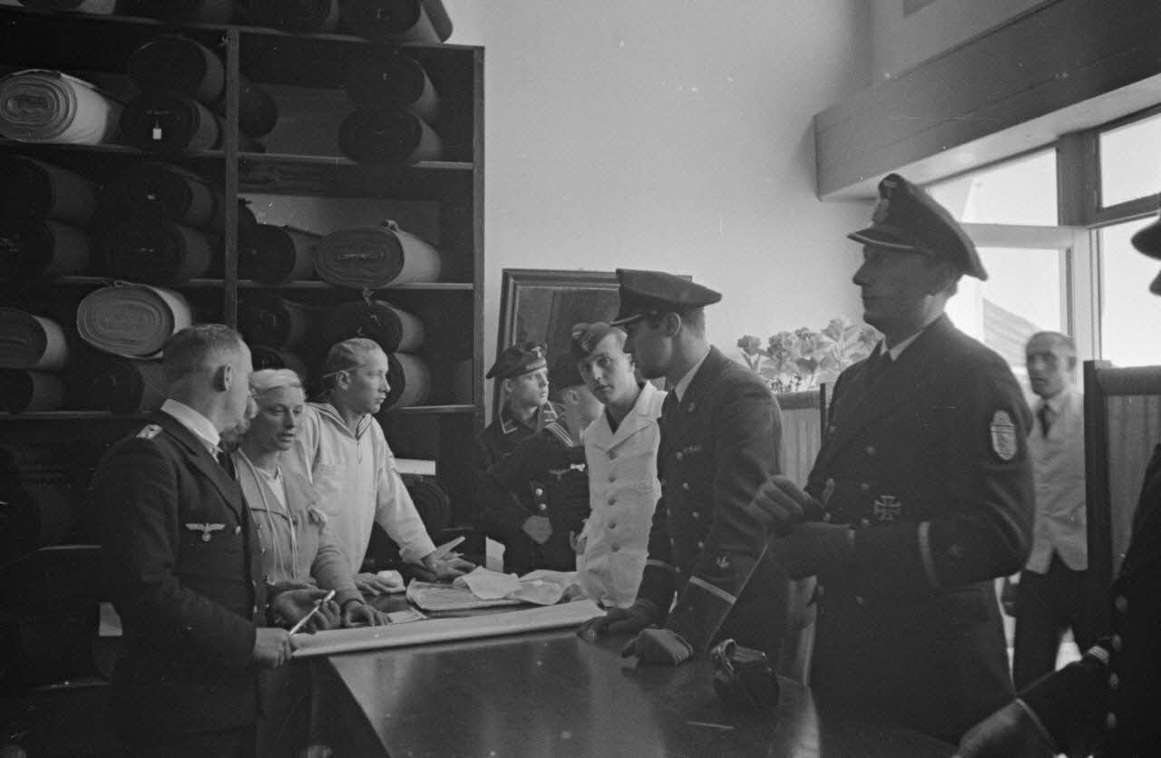 Des membres de la 2e compagnie de propagande de la marine allemande (Marine Kriegsberichter Kompanie 2) rendent visite à un maitre-tailleur de la Kriegsmarine. Les reporters commandent de nouveaux uniformes au gérant de la boutique, un sous-officier de la Kriegsmarine et une civile, certainement d'origine allemande. On remarque la présence du Rundfunkberichter Heinrich Schwich qui vient commander un nouvel uniforme auprès du tailleur. On reconnaît également le reporter Lothar Günther Buchheim.