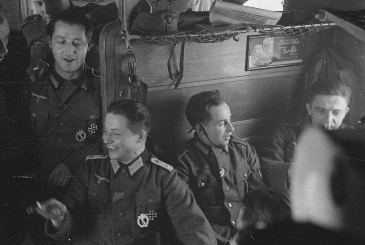 Note : certains des fantassins présents dans ce wagon seront photographiés par Werner Böhmer lors d'une cérémonie, consulter le reportage DAT 1268.