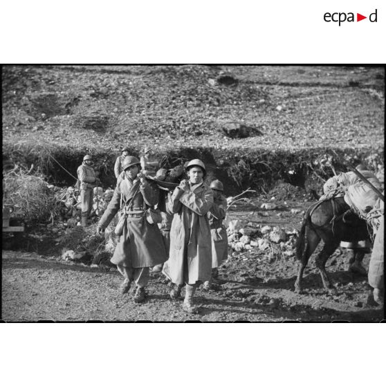 Des tabors marocains conduisent les mulets qui transportent le ravitaillement.