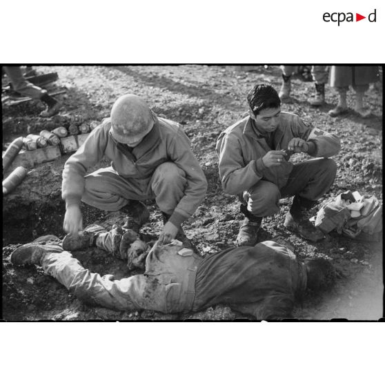 La campagne d'Italie : combats de la Costa San Pietro, évacuation des blessés du 8e RTM, reconstruction d'un pont par les éléments du Génie.