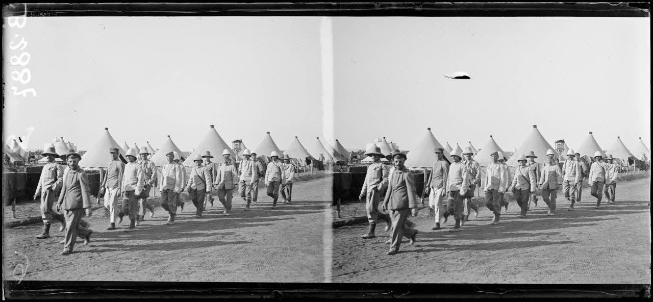 [Des prisonniers de guerre reviennent au campement, près de Rabat.] [légende d'origine]
