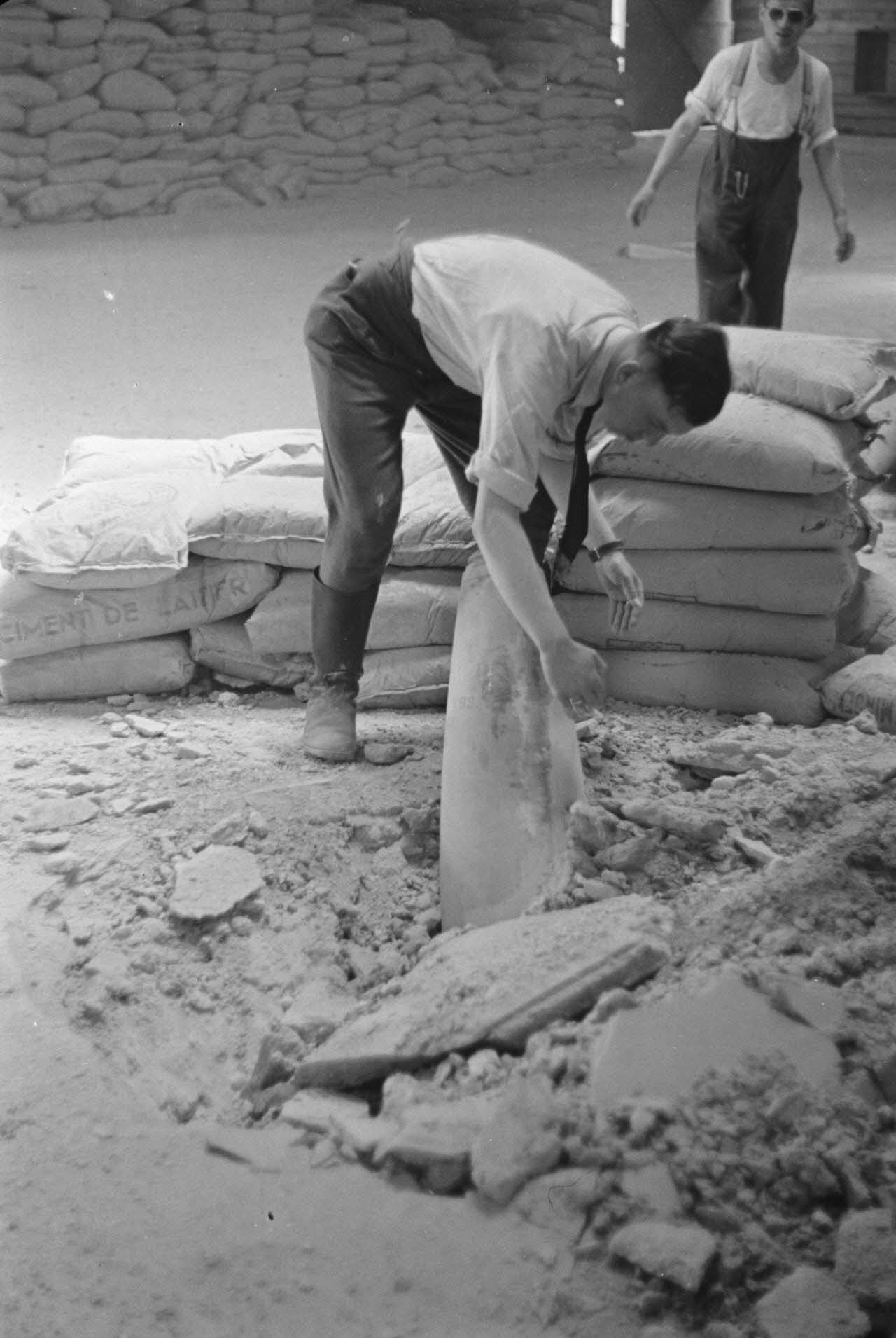 Destruction d'une bombe non explosée (suite à un bombardement).