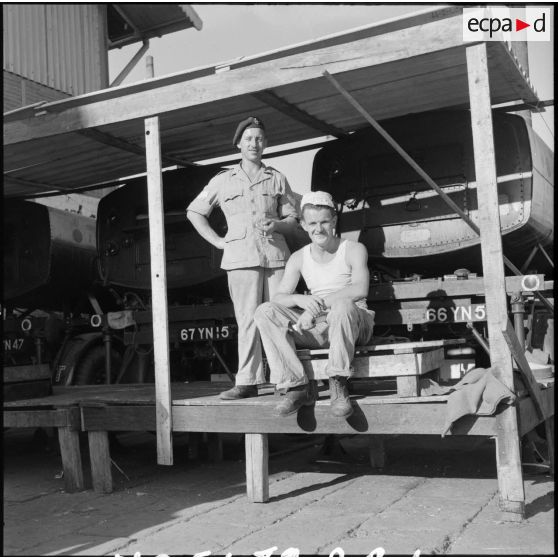 Des parachutistes français en conversation avec des soldats écossais, au cours d'une permission à Port-Saïd.