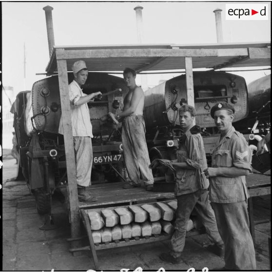 Boulangerie de l'intendance militaire britannique et permissionnaires français et britanniques à Port-Saïd.