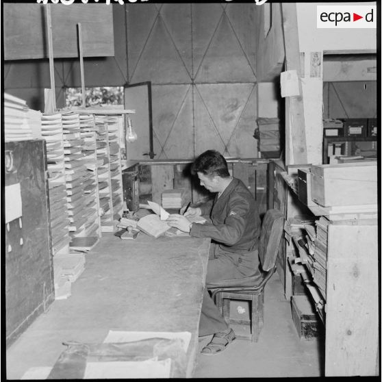 Un soldat de la 407ème compagnie de réparation divisionnaire (CRD) travaille à son bureau.