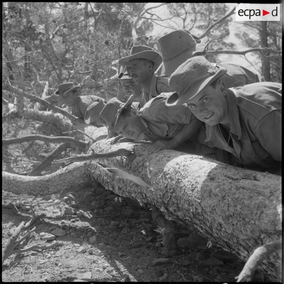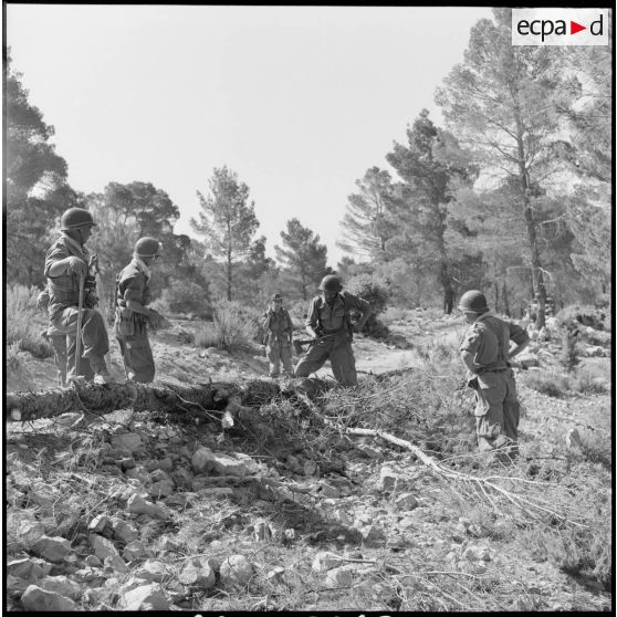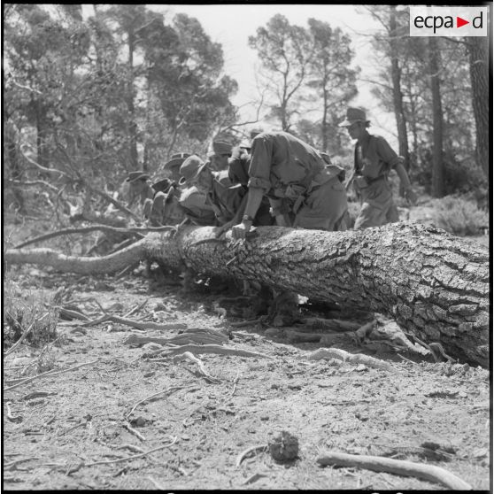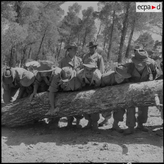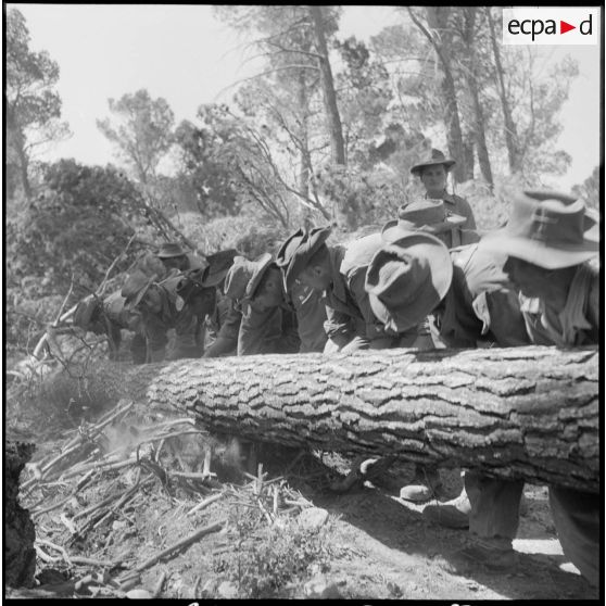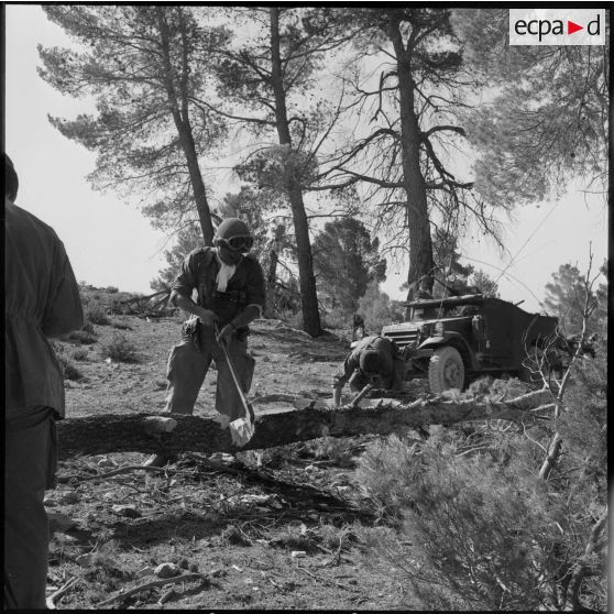 Soldats du 3e régiment étranger d'infanterie (REI) essayant de déplacer un arbre, région de Contantine.
