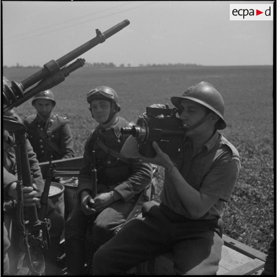 Un caméraman filme des soldats de la 7e armée dans un véhicule lors d'une opération.
