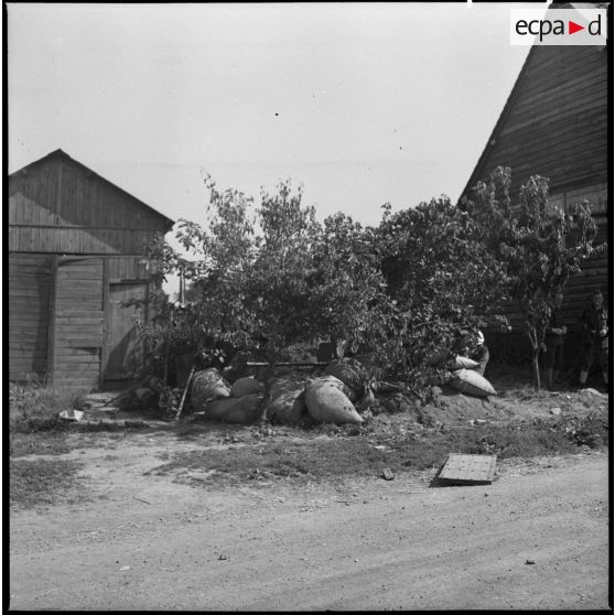 Des soldats de la 7e armée équipé d'un mitrailleuse lourde en opération.