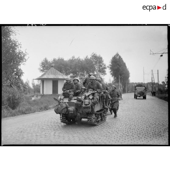 Une chenillette belge transporte des soldats de la 7e armée lors d'une opération.
