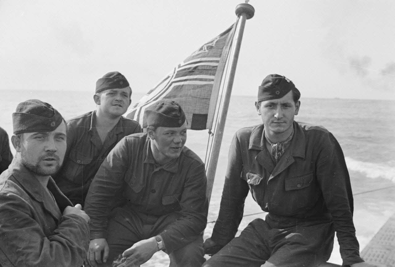 Peu avant le retour de croisière au port de Brest, l'équipage du sous-marin U-203 se détend.