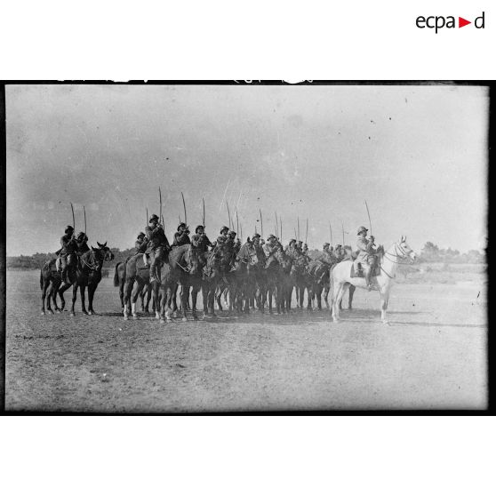 Un peloton à cheval du 7e régiment de chasseurs à cheval (RCC) avance en ordre de bataille.