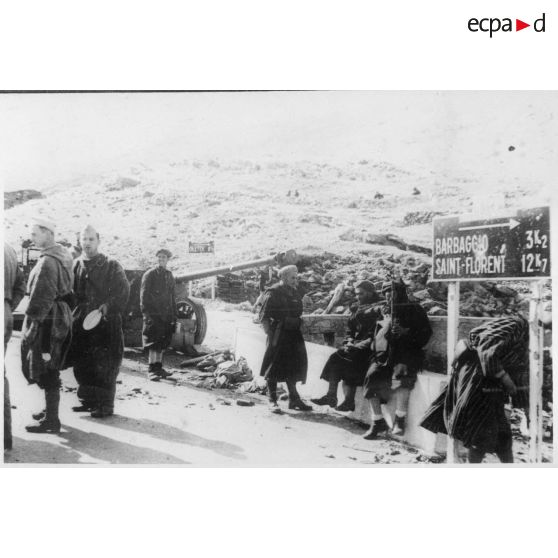 Après la prise du col de Teghime, des goumiers du 2e groupe de tabors marocains (GTM) sont rassemblés à l'intersection de routes menant à Barlaggio, Saint-Florent et Oletta.